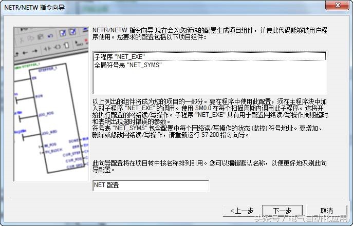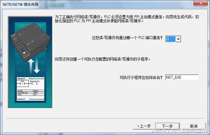 接下来(图3)用户选择使用哪个通讯口进行PPI通讯,0口或者1口,一旦选定了,此向导所有的网络读写操作都会经过该口,向导会为子程序定义一个缺省的名称,默认是'NET_EXE',当然也可以修改这个名称;