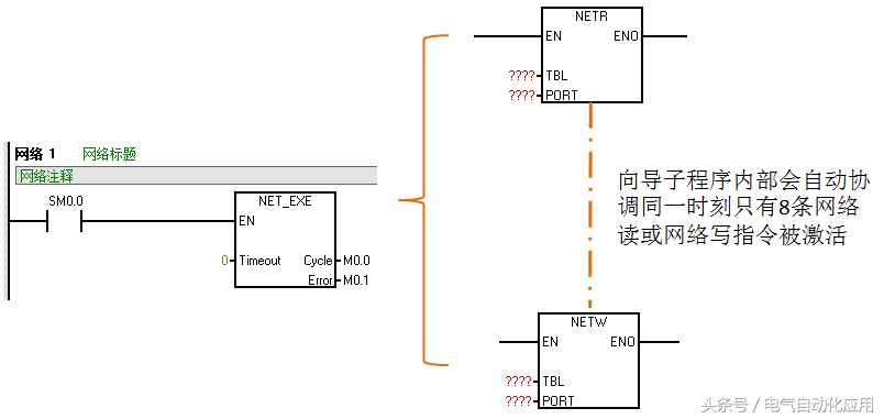 向导子程序内部会自动协调同一时刻只有8条网络读或网络写指令被激活。