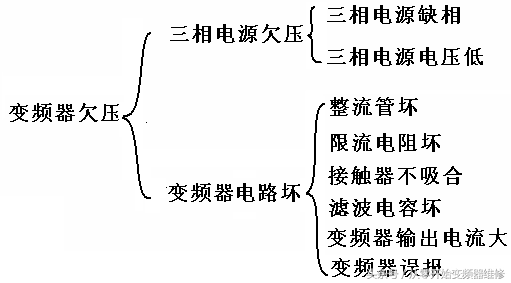 变频器报欠压与缺相故障分析;想获得变频器维修图纸以及相关技术资料请关注“从零开始变频器维修”公众号。