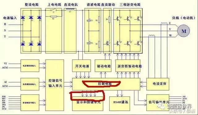 变频器的控制电路包括开关电源、驱动电路、检测电路(电流、电压、温度、故障、检测)、操作控制电路和其他基本电路。