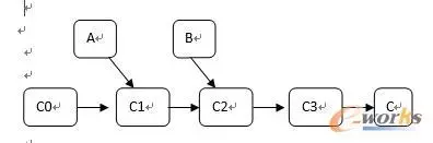 上图中表示,一种原材料C0,经过一步加工到C1,这时候需要装配上A, 然后继续加工成C2, 再装配上B,然后加工成C3, 下一步变成C。
