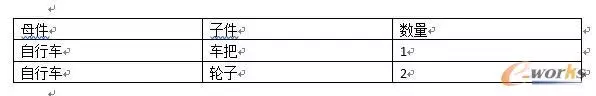 BOM数据表可以有下面的表示方式,最基本的BOM表,仅仅包含3个字段,母件,子件和数量。例如