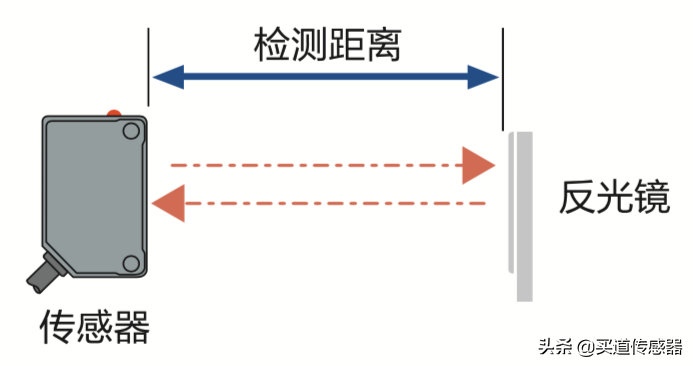 镜面发射型光电传感器:传感器和反射镜之间的距离