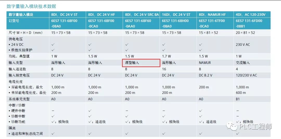 (3)源型/漏型两用式DI模块(既可NPN也可以PNP型传感器):如:6ES7 321-1BP00-0AA0