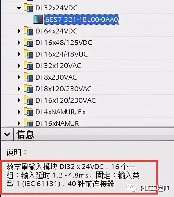 S7-300的DI模块很多,要具参数分需要在硬件组态中查看(具体接法请参考第二步)