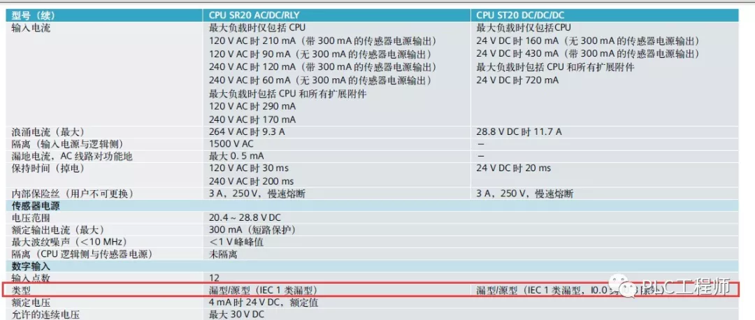 S7-200系列的输入端既支持源型也支持漏型,所以既可以接NPN传感器也可以接PNP的传感器,其他型号可以参照产品手册(如下图):