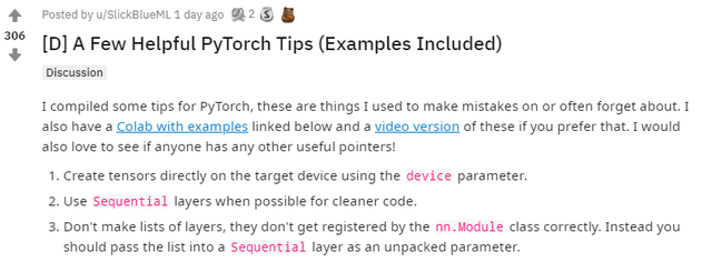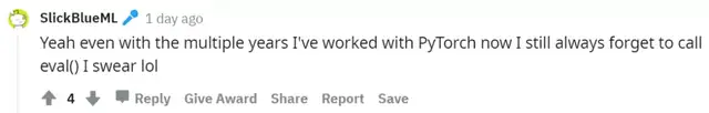 上述 7 个 PyTorch 使用技巧,网友也给出了自己的评价。一位用户评论道:「即使我用 PyTorch 工作了多年,现在我仍然忘记调用 eval(),我发誓。」
