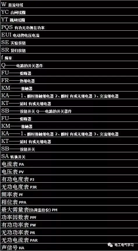 下面是总结给电工朋友们的符号素材分享,特别是适合电路初学者,零基础教你快速的识别电路图纸看懂电路施工图,闲下来记得看哦~ 电路符号都有哪些呢?这里专门整理为表格图片,更加的方便大家观看,建议进行收藏一起,持续的进行查看哦! 一、了解符号的含义电路符号的含义可以从两面方面去识别,一是型号、一是规格具体的数据表示方法如下: 1、型号含义: V-绝缘聚氯乙烯。V-聚氯乙烯绝缘V-聚氯乙烯护套 B-平型(扁形)。 S-双绞型。A-镀锡或镀银。 F-耐高温 P-编织屏蔽P2-铜带屏蔽P22-钢带铠装 Y-预制型、一般省略,或聚烯烃护套 FD-产品类别代号,指分支电缆。将要颁布的建设部标准用FZ表示,其实质相同 YJ-交联聚乙烯绝缘 V-聚氯乙烯绝缘或护套 ZR-阻燃型 NH-耐火型 WDZ-无卤低烟阻燃型 WDN-无卤低烟耐火型 2、规格表示法的含义 ①单芯分支电缆规格表示法:同一回路电缆根数*(1*标称截面), 0.6/1KV, 如:4*(1*185)+1*95 0.6/1KV ②多芯绞合型分支电缆规格表示法:同一回路电缆根数*标称截面, 0.6/1KV, 如:4**185+1*95 0.6/1KV ③多芯同护套型分支电缆规格表示法:电缆芯数×标称截面-T,如:4×25-T 二、字符电路符号大全电路符号都有哪些代表,具体的含义都有哪些?如果你能够根据了解这些字母符号代表的定义,拿到图纸看图一定不费吹灰之力,具体都有下面这些。