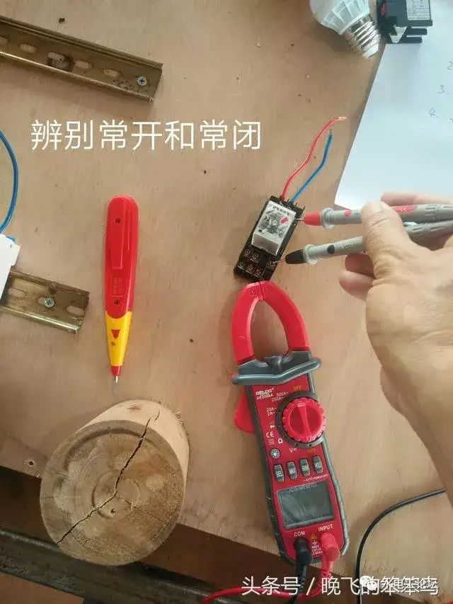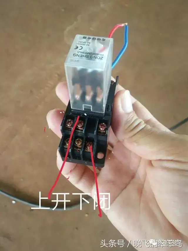 中间继电器的每一组控制触点分为公共端,常闭点和常开点。和线圈进线端一个方向的是触点公共端,出线端分常开和常闭。判断常开和常闭的方法是把继电器插上继电器座,用万用表的通断档分别测量公共端到两个出线端的通断,通的是常闭,不通的是常开。如果没有万用表,我这里有一个小经验告诉大家,一般中间继电器的触点都是上开下闭,就是上面一排是常开点,下面一排是常闭点。大家可以参考一下。后面有图。