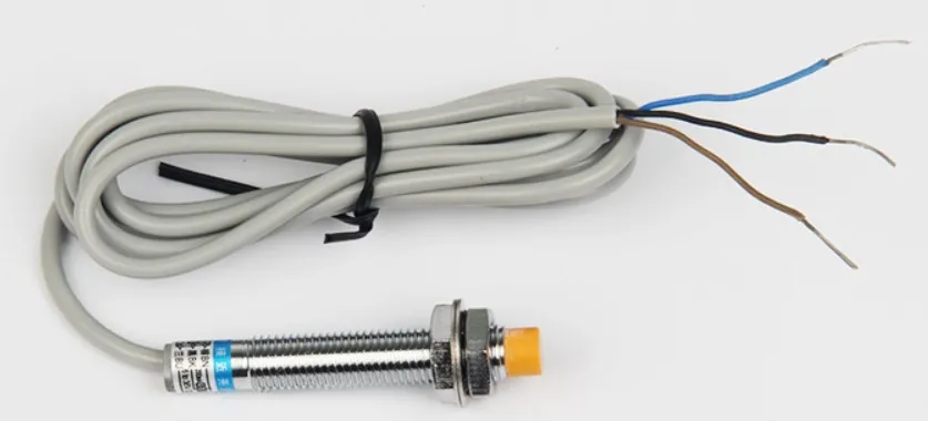 图2 传感器 三线制传感器三根线通常棕色线代表正极(VCC)、蓝色代表负极(GND)、黑色代表信号输出端(OUT)如图2所示。PN和PNP型传感器输出核心控制器件是三极管,其检查、放大电路都是一样。