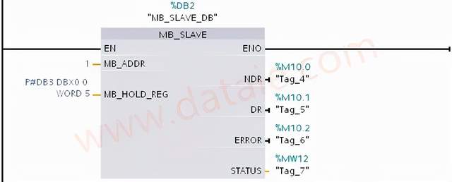 解决方法分别如下: - 新建“MB_SLAVE”指令的输入引脚“MB_HOLD_REG”对应的DB块。