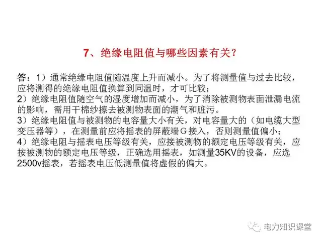 (3)正确读取被测绝缘电阻值大小。同时,还应记录测量时的温度、湿度、被测设备的状况等,以便于分析测量结果。