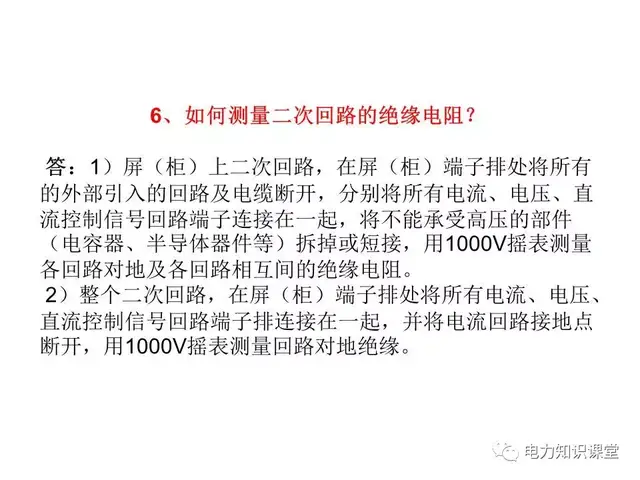 5、测量绝缘时,必须将被测设备从各方面断开,验明无电压,确实证明设备无人工作后,方可进行。在测量中禁止他人接近设备。