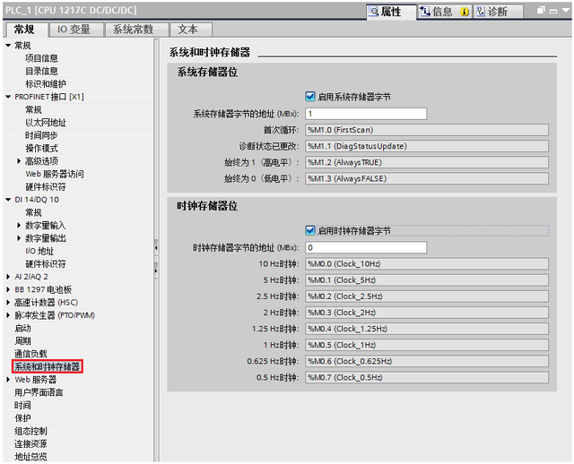 图6 硬件标识符 (4)另外,S7-1200 还提供了系统和时钟存储器功能,为了便于后续指令,建议使能该功能。在CPU “属性”→“常规”→“系统和时钟存储器”使能系统和时钟存储器功能,如图7所示。