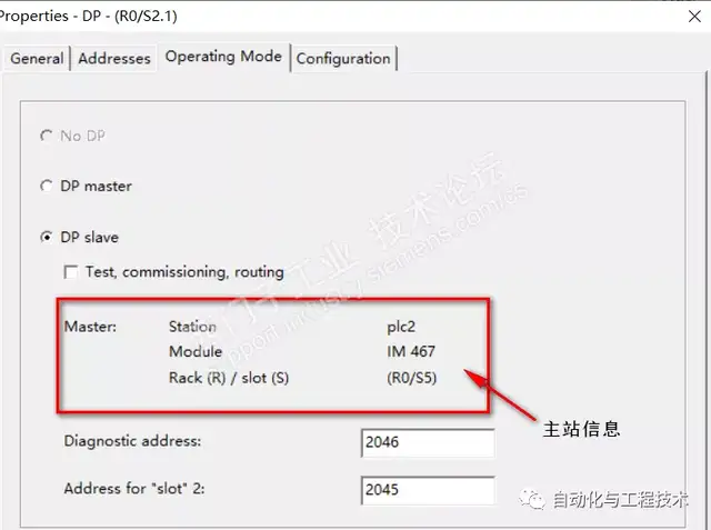 所以说上载程序也不是一件容易的工作。 (五)经验总结作为现场负责技改的工程师,在项目执行初期应注意的几个要点: (1)一定要得到现场最终的程序。 (2)如果程序中包含其它可选软件,最好安装,使用重组需要看看是否影响到其它站点通信。 (3)如果没有最终程序,需要到现场进行离线/在线比较,保证离线程序与在线程序相同。 (4)如果离线/在线程序不相同,上载不同的程序块。 (5)如果没有各个PLC站点的连接信息,可以在网络配置视图中在线查看并记录连接信息,然后在离线程序中修改和添加。 (6)上载的站点中需要查看CPU 的PROFIBUS/PROFINET接口,是否站点作为智能从站?如果作为智能从站,这里也可以查看到主站信息,如下图所示: