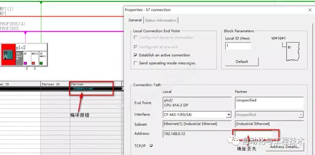 所以还需要将通信伙伴PLC也上载,完善连接信息。如果通信伙伴和其它PLC还有通信,也需要上载,总之所以相关联的站点都要上载,所以上载在线程序也是比较麻烦的。 (3)如果通信连接丢失,例如上载后再下载,将原有连接覆盖,连接必须重新创建,并且必须与通信程序块匹配,如下图所示: