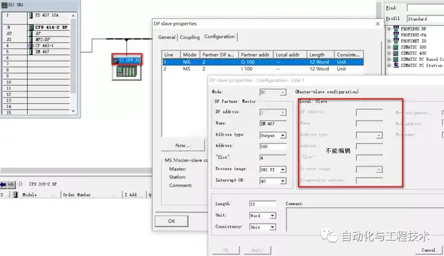 由于没有从站信息,通信信息丢失,而且这部分信息还不能编辑。修改的方式:要么上载智能从站(如果是PROFIBUS网络,智能从站没有以太网,还需要到现场使用MPI网卡上载),那么从原有程序中复制到本地项目中。本地项目中包含智能站点后,智能站点的网络ID与主站的网络ID可能不相同,还需要将智能站点与主站分配到相同的网络上。然后在主站中,点击配置信息未完整的智能从站进行耦合,下图所示: