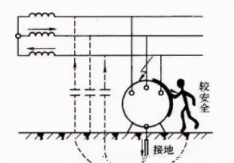 运用 IT 方式供电系统,即使电源中性点不接地,一旦设备漏电,单相对地漏电流仍小,不会破坏电源电压的平衡,所以比电源中性点接地的系统还安全。但是,如果用在供电距离很长的情况下,供电线路对大地的分布电容就不能忽视了。