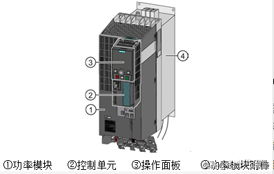 西门子G120C变频器外观如下图所示。G120C变频器主要由功率模块、控制模块和操作面板构成。