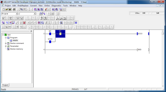 ⑤ Kepware 6.4.321 二、GX Developer程序编写及仿真2.1 新建工程 打开GX Developer软件,然后选择新建一个工程,PLC类型选择为FX3U(C)。