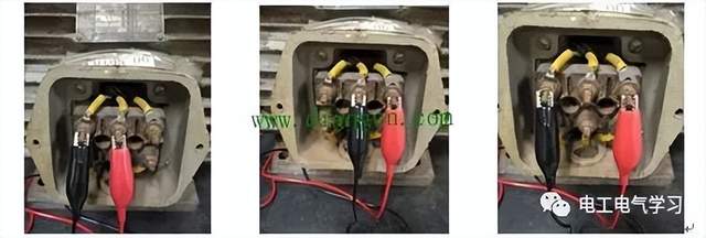 1、测量电动机相与地(外壳)绝缘电阻时,E端(黑色引线)接电动机外壳,L端(红色引线)分别接被测绕组的一端(U-外壳;V-外壳;W-外壳)如图1所示。