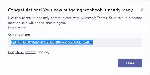3.创建webhook完会提示保存token(妥善保存就行,我们这里暂时不用它,略过认证部分)