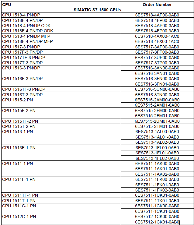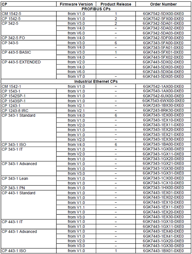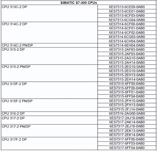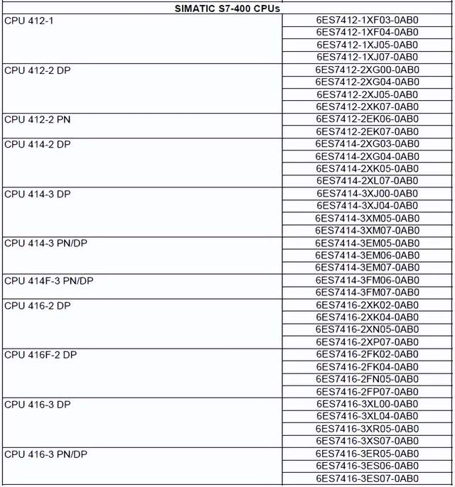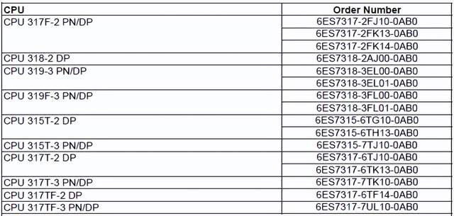 FM | 版本 | 订货号 | FM 356-4 V5.0 | V5.0 | 6ES7356-4BM00-0AE0 | FM 356-4 V5.0 | V5.0 | 6ES7356-4BN00-0AE0 | FM 456-2 | V5.0 | 6ES7456-2AA00-0AB0 |