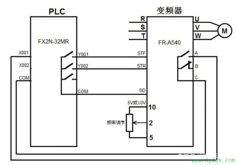 在某些应用场景中,需要控制电机实现正反转。虽然理论上可以通过调整变频器输出端的相序来改变电机转向,但这种方法操作繁琐且易出错。幸运的是,现代变频器通常内置正反转控制功能,通过连接不同的数字输入端子(如FWD和REV)即可轻松实现。