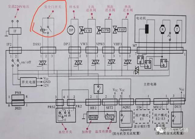 二、控制电路分析 滚筒洗衣机各部件的协调工作都是通过主控电路实现的,典型滚筒洗衣机的控制原理图如下图所示。 1、供电部分 工作过程:交流220V电压纪念日接插件IF1和IF2为主控板上的开关电源部分供电,开关电源工作后,输出直流电流Vcc为洗衣机的整个工作系统提供工作条件。