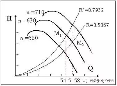 从上面的分析还可以看出,调节阀门控制风量,随着风量的减少,风压反而增加;而采用变频调速器调速来控制风量,随着风量的减少,风压大幅度下降。风压下降太多,有可能满足不了工艺要求。即如果工况点在曲线(1)、曲线(2)、H轴所围区域内部,单纯地依靠变频调速器调速将无法满足工艺要求,需要和阀门调节结合才能满足工艺要求。某厂引进的变频调速器,在离心风机中的应用中,因没有设计阀门,单纯地依靠变频调速器调速来改变风机工况点,吃尽了苦头。要么转速太高,风量太大;若降低转速,风压又满足不了工艺要求,吹不进风。因此离心风机在使用变频调速器调速节电时,要兼顾风量和风压这2个指标,否则会带来不良的后果。微信:97555055