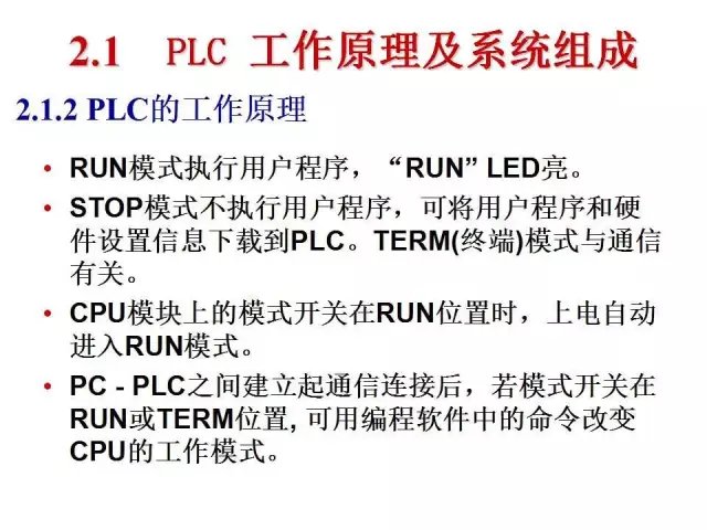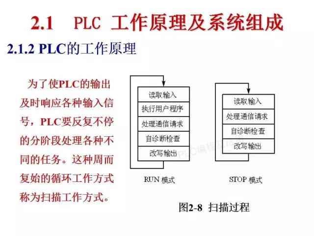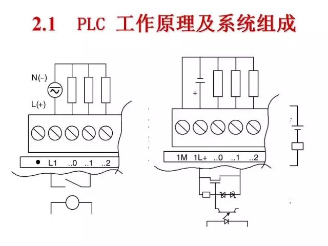 输入模块一般由光电耦合电路组成;输出模块根据型号不同有继电输出、晶体管输出、电输出等。每一点输入输出都有相应的发光二极管指示。