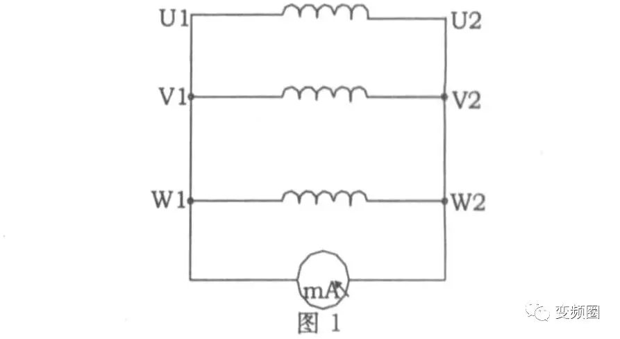 先用摇表或万用表电阻档分别找出三相绕组的各相两个线头 , 给各相绕组假设编号为 U1 、U2 、V1 、V2 和 W1 、W2  。按图 1 接线 ,用手转动电动机转子 ,如果万用表( 用微安档或毫安档) 指针不动或表的读数非常小 , 则证明假设的编号是正确的 , 若表的读数大 , 说明其中有一相首尾端假设编号不对 ,应逐相对调重测 ,直至正确为止。