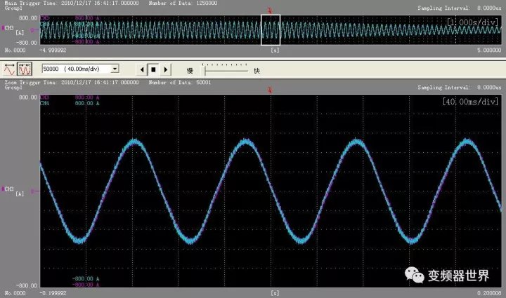 3,通过均流控制算法,多单元间不需要硬件严格配对功率单元间就能达到理想的均流效果(图7和图8分别是均流控制算法前后的两个单元间电流波形)。