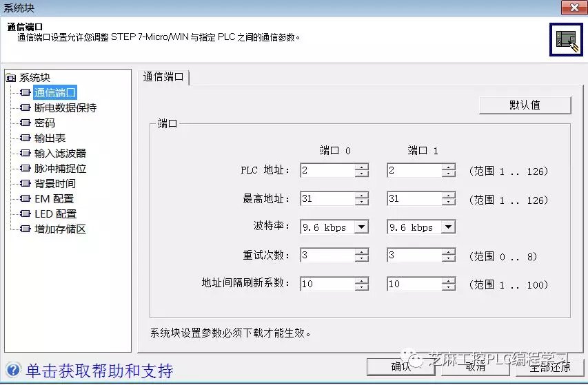控制字SMB30(或SMB130)将通信口设置为PPI主站