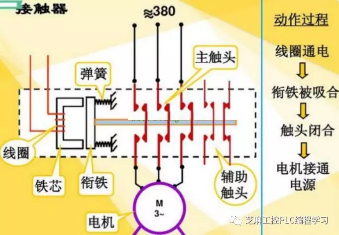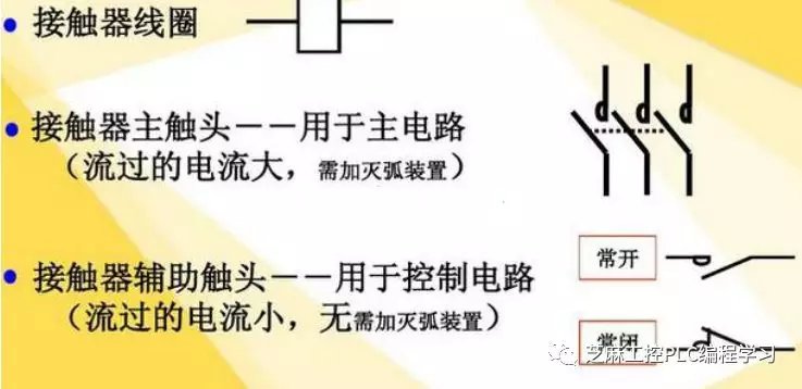 继电器和接触器作为电路中常用的元器件,两者有很大不同,需要作用在不同的电路中,当然有时候又可以混用,但是不能够搞错了。继电器和接触器的相同之处在于都是通过控制线圈的有电或无电来驱动触头的开闭,以断开或接通电路。继电器和接触器都是属于有接点电器,当然线圈的控制电路与触点所在的电气回路是电气隔离的。 继电器和接触器结构 继电器是一种电控制器件。它具有控制系统(又称输入回路)和被控制系统(又称输出回路)之间的互动关系。通常应用于自动化的控制电路中,它实际上是用小电流去控制大电流运作的一种“自动开关”。故在电路中起着自动调节、安全保护、转换电路等作用。 继电器一般用在电器控制电路中,用来放大微型或小型继电器的触点容量,以驱动较大的负载。如可以用继电器的触点去接通或断开接触器的线圈。一般继电器都有较多的开闭触点,当然继电器通过适当的接法还可以实现某些特殊功能,如逻辑运算等。 当输入量(如电压、电流、温度等)达到规定值时,继电器使被控制的输出电路导通或断开。输入量可分为电气量(如电流、电压、频率、功率等)及非电气量(如温度、压力、速度等)两大类。 接触器用来接通或断开功率较大的负载,用在(功率)主电路中,主触头可能带有连锁接点以表示主触头的开闭状态。 接触器利用线圈流过电流产生磁场,使触头闭合,以达到控制负载的电器。接触器由电磁系统(铁心,静铁心,电磁线圈)触头系统(常开触头和常闭触头)和灭弧装置组成。其原理是当接触器的电磁线圈通电后,会产生很强的磁场,使静铁心产生电磁吸力吸引衔铁,并带动触头动作:常闭触头断开;常开触头闭合,两者是联动的。当线圈断电时,电磁吸力消失,衔铁在释放弹簧的作用下释放,使触头复原:常闭触头闭合;常开触头断开。 继电器和接触器的区别 继电器和接触器的本质区别就是承受的载荷不同,电流容量大的是接触器,小的是继电器,还有区别使用在主回路的用接触器,控制回路用继电器。 接触器的作用是用来接通和分断较大的电流信号,驱动电机等功率设备; 继电器的作用是用来进行信号的转换,不同电压等级的设备之间控制信号的接口,其触点承载能力一般较小,用来驱动接触器等电器元件。 我们举例说明接触器如何起到自锁,互锁的作用: 假设有两个接触器:A,B,分别控制两台电机。A接触器的起动接点为Qa,把A的常开辅助点,并联于Qa,即为自锁。 自锁的作用:起动接点Qa闭合,A接触器吸上,A的常开辅助点闭合,即使Qa断开,A接触器由自己的辅助点保持吸上状态,此为自锁。 把A的常闭辅助点串联在B接触器的线圈回路;同时,把B的常闭辅助点串联在A接触器的线圈回路,则为互锁。 互锁的作用:A接触器吸上;则B接触器不能吸上,反之亦然。 而继电器则不一样 1、继电器属于二次设备,有中间继电器、电压继电器、电流继电器、时间继电器等,用于信号采样、转接、控制、保护等,属于低压设备,触头容量均较小,一般为5A。 断路器属于一次设备,有空气断路器、油断路器、真空断路器、SF6断路器等,它直接工作在一次电源线上,用于负载的分、合(控制)电源的作用,根据型号不同,工作电压及触头容量也不同 2、继电器是用小电流控制大电流,通常用在控制电路里。 熔断器是以自身的破坏来避免电路受损,用在保护电路里。 断路器就是空开类的开关,控制电路通断的,继电器是用二次控制电路里。 熔断器是用在保护电路里。 断路器就是控制电路通断的。 3、继电器是把小电流或小电压放大。也是扩大二次接线的路数 熔断器是防止线路和电器设备短路造成更大损失的保护装置 断路器作用除于熔断器相同外可启动和停止电器设备并可免去换熔丝的麻烦 4、熔断器:有高低压之分,可切断短路电流。用于保护在电路发生短路故障时对电源和用电设备的破坏。不能反复使用 断路器:有高低压之分,可切断短路电流。用于保护着电路发生短路故障时对电源和用电设备的破坏。可以反复使用。 继电器:只有低压和弱电电路使用。用于控制回路中,对电路实现控制和保护功能。通常是用小功率驱动大功率。可实现不同电压等级的电路元器件之间的控制。按照其功能有可分为:电压继电器、电流继电器、功率继电器、时间继电器、热继电器、电流电压继电器等等。 接触器和继电器的作用 继电器 1) 扩大控制范围。例如,多触点继电器控制信号达到某一定值时,可以按触点组的不同形式,同时换接、开断、接通多路电路。 2) 放大。例如,灵敏型继电器、中间继电器等,用一个很微小的控制量,可以控制很大功率的电路。 3) 综合信号。例如,当多个控制信号按规定的形式输入多绕组继电器时,经过比较综合,达到预定的控制效果。 4) 自动、遥控、监测。例如,自动装置上的继电器与其他电器一起,可以组成程序控制线路,从而实现自动化运行。 接触器 接触器的作用就是用小电流来控制大电流负载,可以远距离控制,同时可以自锁互锁,防止误动作造成事故,由于是小电流控制,使得保护电路简单可靠。