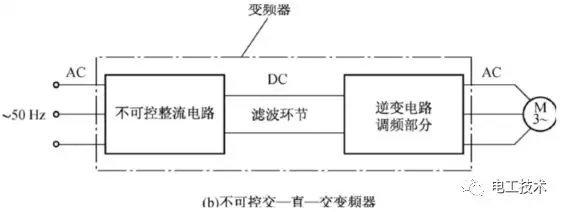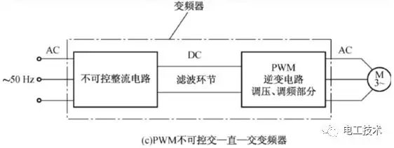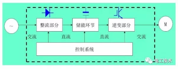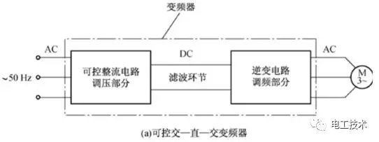 先把频率固定的交流电整流成直流电,再把直流电逆变成频率连续可调的交流电。
