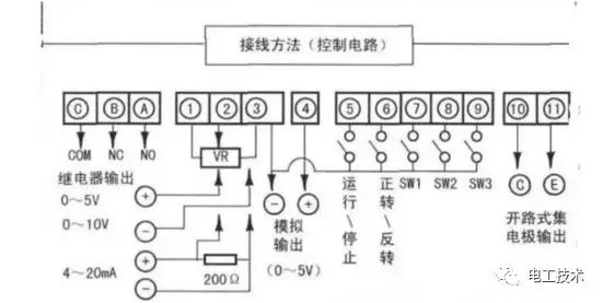 2、由于控制电路的频率输入信号是微小电流,所以在接点输入的场合,为了防止接触不良,微小信号接点应使用两个并联的节点或使用双生接点。