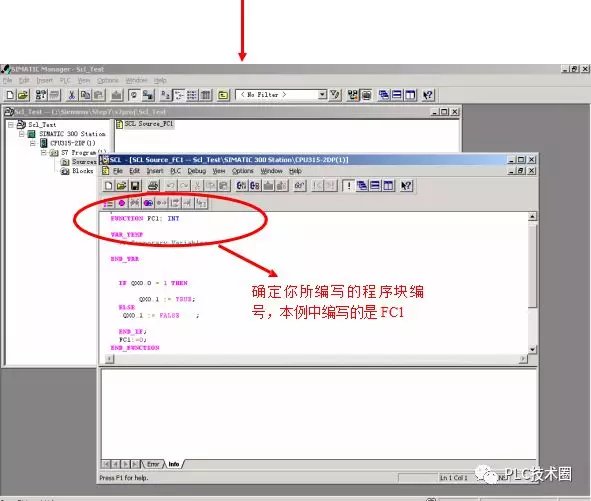 经过以上步骤,就完成了一个用 SCL 编写功能块的全过程, FC1 的源程序,保存 在“Sources”文件夹中,可随时打开进行修改。