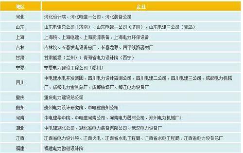 14个省(市、区)电力勘测设计、工程、装备制造企业系统企业: