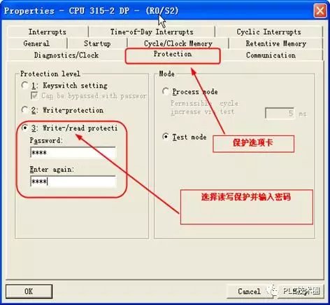 设置PLC密码保护 当我们写好程序下载到PLC之后就希望PLC能正常稳定的运行。为了防止人为出现的故障,要对PLC设置使用权限,来保护PLC程序不会被更改或程序被删除。如何设置这个口令来保护PLC呢??