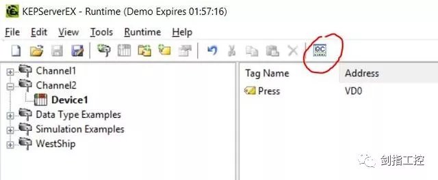 如压力Press, 如果在PLC中此寄存器地址为VD0,那么在 Adress中输入 VD0,基本与西门子的地址保持一致。在 Data Type中选择 Float,读写类型用户可以自定义,以及设置扫描速率。