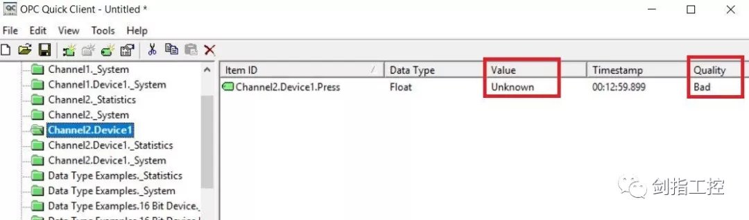 如果通讯正常那么 Value这里会有数值显示,Quality这里将会显示通讯好坏,Bad代表通讯异常,Good代表通讯正常。 |