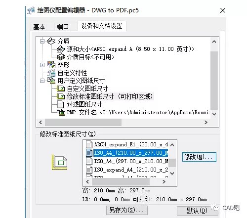 当使用CAD把DWG的图纸文件转成PDF文件的时候,可能会出现图框页边距前后不一致的情况?那怎么做才能保持前后的图框页边距不变呢? 1、首先,大家打开中望CAD软件,打开需要转成PDF的图纸文件 2、点击界面菜单栏上的“文件”-“打印”按钮,或者点击CTRL+P的组合键,打开打印设置的对话框 3、打开“打印机/绘图仪”的列表,我们选择这里的“DWG to PDF.pc5”,再点击右侧的“特性”按钮 4、在弹出来的绘图仪编辑器中,我们点击修改标准图纸尺寸(可打印区域)按钮,我们选择并记住这个A4的图纸尺寸,再点击修改按钮 5、在弹出来的“自定义图纸尺寸-可打印区域”对话框里,我们把上下左右的边距全部改成0,然后点击“下一步”按钮 6、按照默认设置保存或者自己设置文件名,再点击“下一步”按钮,最后点击“完成”以及“确定”按钮 7、回到CAD软件的“打印”对话框,我们打开“纸张”的列表,选择刚刚的A4图纸尺寸 8、打开“打印区域”-“打印范围”的列表,选择“窗口”按钮,选择需要框定的图纸范围,再勾选上“居中打印”的复选框,点击“确定”按钮 9、这样子,我们在把CAD图纸文件转成PDF的时候,就可以保持图框的页边距不变化了 |