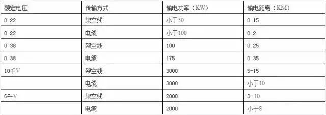根据不同的额定电压推荐不同的输出容量输电距离: