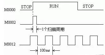 M8002:初始脉冲(仅在运行开始时瞬间接通),M8003与M8002相反逻辑。